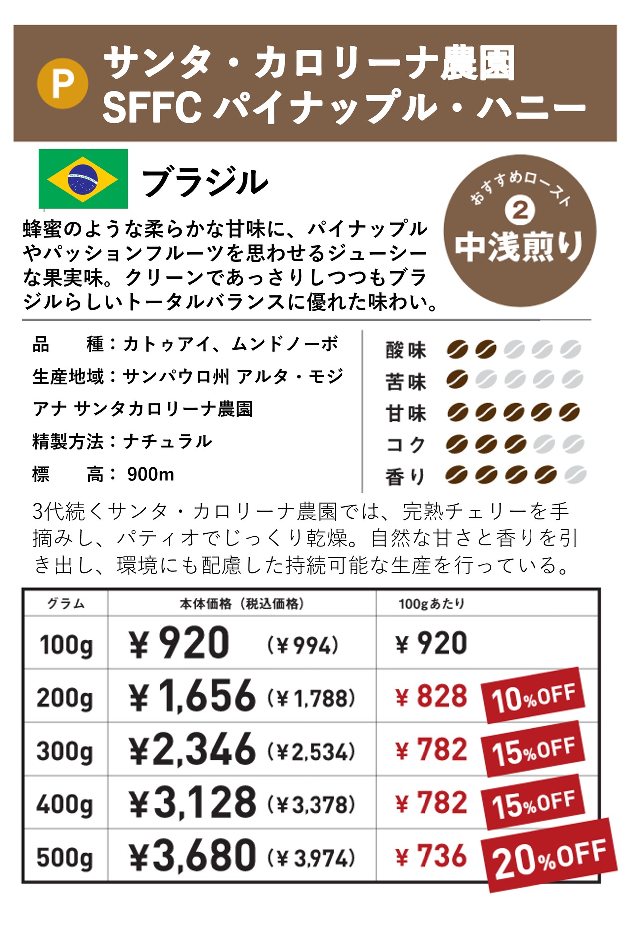 ブラジル サンタ・カロリーナ農園 SFFC パイナップル・ハニー 200g(100g単価の10%OFF)
