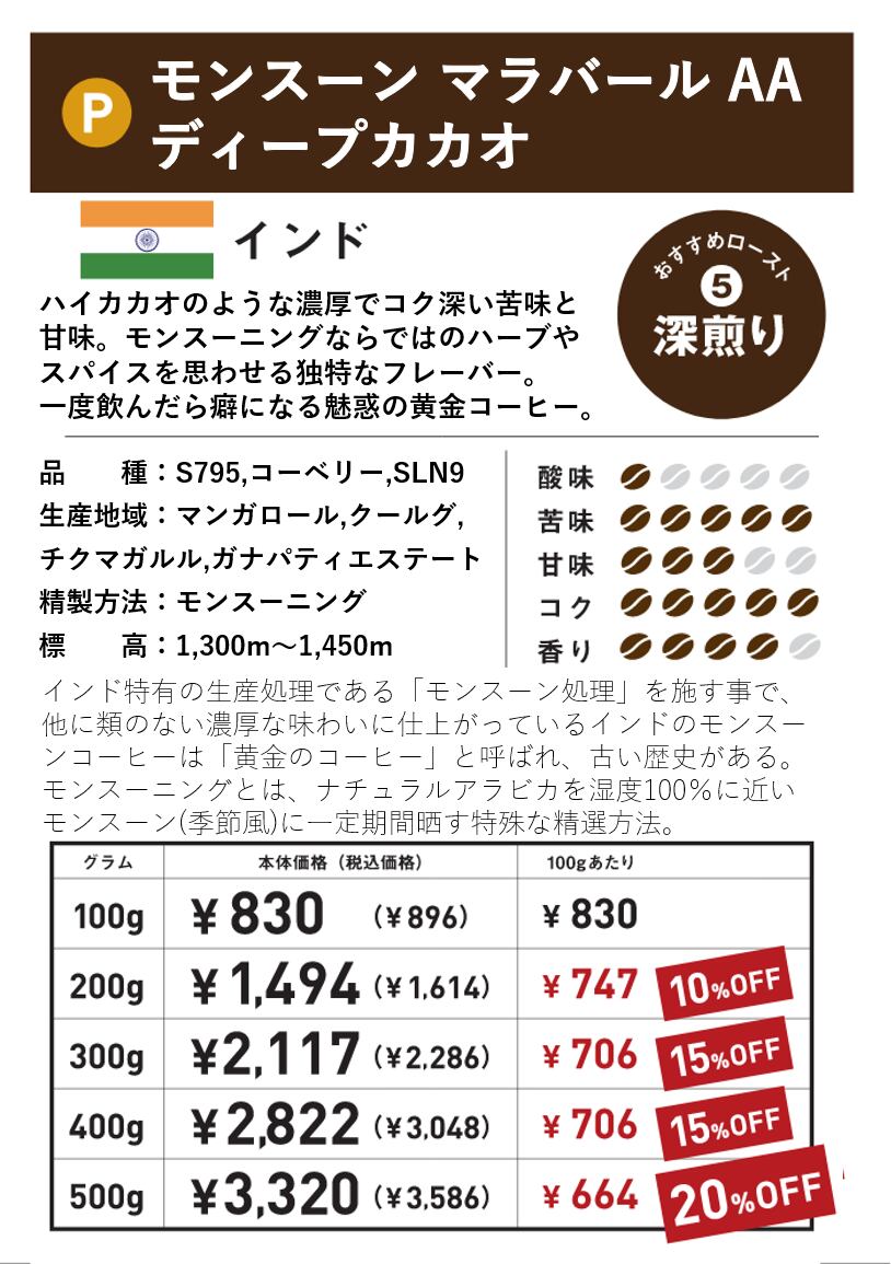 インド モンスーン マラバール AA ディープカカオ 300g(100g単価の15%OFF)