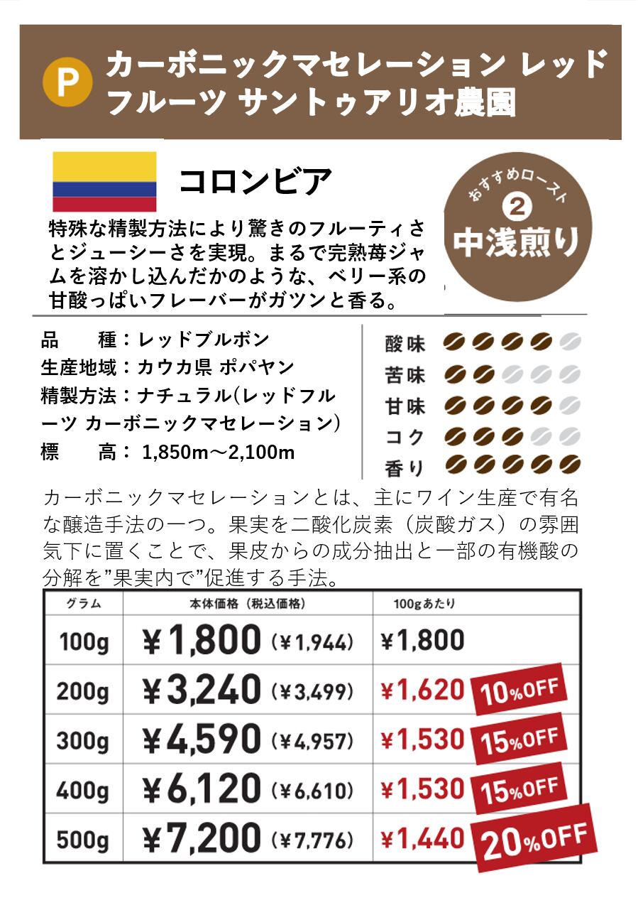 コロンビア カーボニックマセレーション レッドフルーツ サントゥアリオ農園 200g(100g単価の10%OFF)
