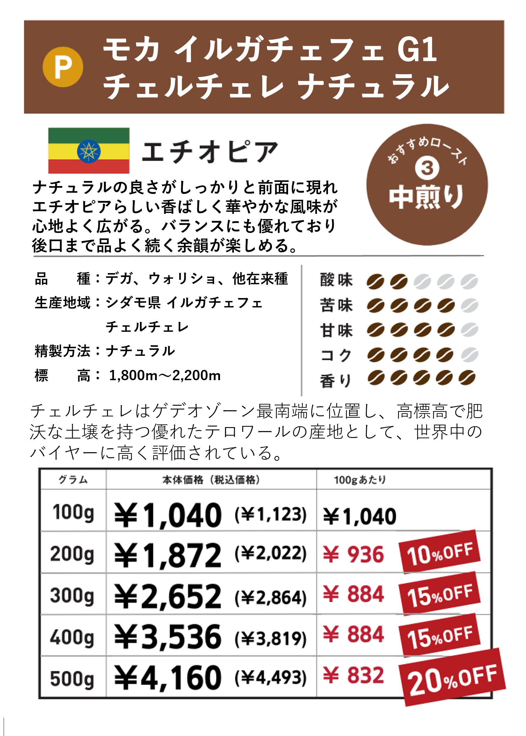 エチオピア モカ イルガチェフェ G1 チェルチェレ ナチュラル 100g