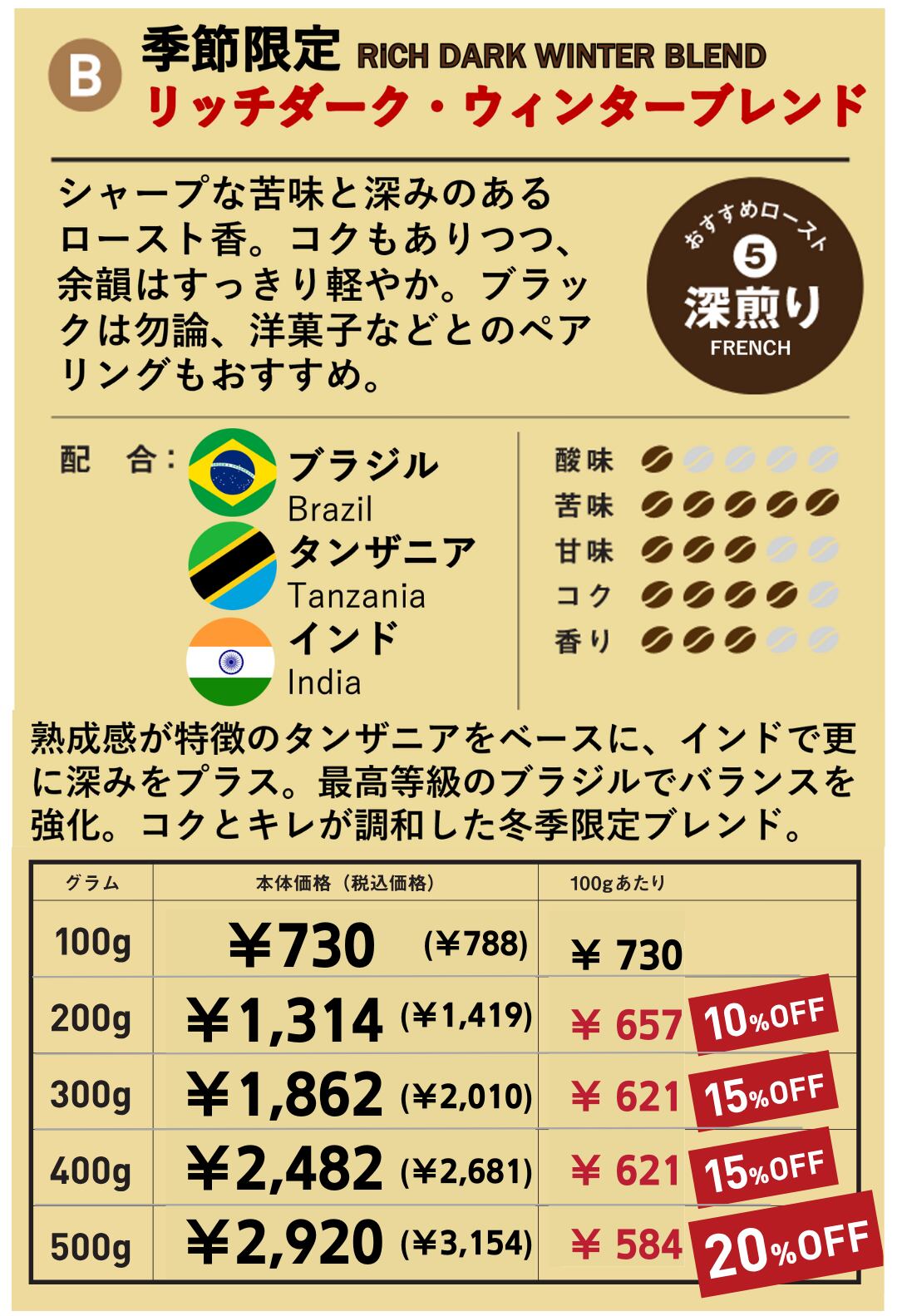 冬限定ブレンド リッチダーク・ウィンターブレンド 300g(100g単価の15%OFF)